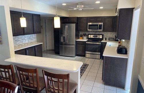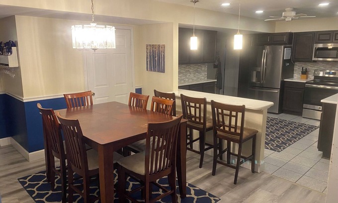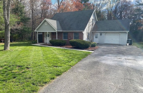 This home was built in the 1980's for a single elderly couple. That means that all the essentials are on the first floor, the doorways are all wide, and the master bathroom has a step in, easy access shower. Upstairs are 2 more bedrooms with a full bath in the hallway. All bedrooms have TVs and all linens are changed for every guest. The back yard has a big deck with a hot tub, table, grill, and we are currently redoing the fire pit area. There is a very large fenced in area just for dogs connected to the deck so there shouldn't be a need to take them out on a leash! I've grown up in this area my whole life and I have lived here with my family for the past 7 years. Please treat it as if it was yours and have an amazing time! I am open to contact for any questions about the house or any suggestions for the area!