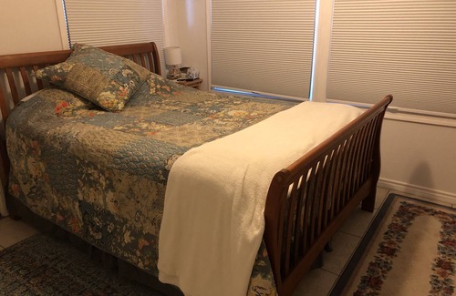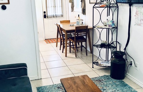 The guest house is secluded and gated from the main house and guests will have the guest house to themselves. The guest house has a couch that makes out to a full bed. There is a washer/dryer combo for small loads for our longer staying guest.