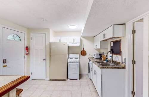 The apartment itself offers an easy and accessible ground-floor location. The interior is well-appointed for contemporary comfort. The mid-size kitchen makes it easy to plan home-cooked meals or prepare snacks to take out on the river. Mounted mini-splits are equipped throughout the space for year-round comfort. Updated sofas and a smart TV are ready to welcome casual downtime in the living room. There's even a Super Nintendo Entertainment System game console and games if you're looking for some throwback fun. The furnished front patio is a peaceful spot for morning coffee or a nightcap. Free WiFi and a private washer/dryer round out the home essentials.