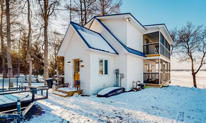 Dog-friendly cabin with amazing lakefront views, fireplace, BBQ, & W/D | House in Madawaska