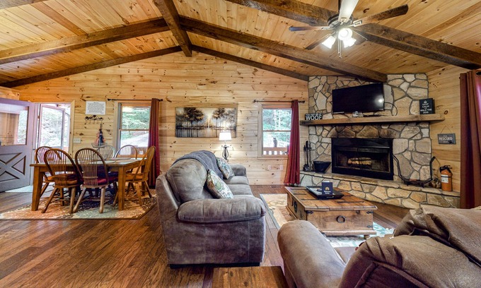 Nestled south of Lake Blue Ridge, this cabin provides easy access to the Aska Adventure Area. You can explore northern Georgia's gorgeous forests thanks to nearby hiking trails. Snap photos of some unforgettable waterfalls. You can even see why Blue Ridge is famed as the trout capital of Georgia with a day of fishing.