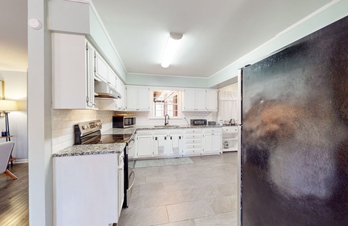 A peaceful Macon stay for you and yours, this tree-lined charmer offers private, dog-friendly living quarters. Boasting a plethora of entertaining amenities, the home is furnished with a fully-stocked game room, complete with an air hockey table, foosball table, dart board, and a collection of board games. When you'd prefer to entertain your loved ones outside, fire up the provided gas grill and host a southern cookout! The sunroom offers a relaxing spot to enjoy dishes and friendly conversation.