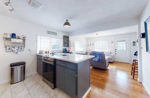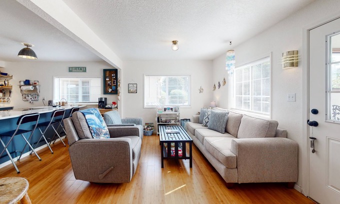 - Dog-friendly coastal-themed home with a full kitchen & washer/dryer