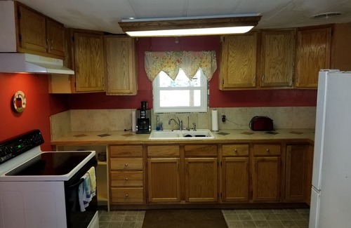 Thank you for checking out the home we lived in for 13 years. It is an 1800 square foot modular with 2 full bath and 4 bedrooms on 3/4 of an acre. We now have a queen bed in the master bedroom, 1 twins in 3 bedrooms. So we have beds for 5 people. We don't mind if you bring a few more guest and use the couch or bring your own air mattress. We actually have another bonus room for air mattresses or cots. NOTE: The hot water heater can handle about 4-5 quick, less than 5 minute showers. After that it gets chilly quickly and you have to give it close to an hour to catch up. Good luck:-)