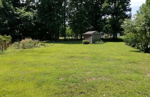 It has a large front and back yard and is surrounded on 3 sides with forest. There is a fire pit you are welcome to use. We have chairs available and a limited supply of chopped wood and a limitless supply in the woods. Straight back from the house a driveway cuts through the woods, please do not cross the driveway. We live locally and are in the process of improving the property inside and out.