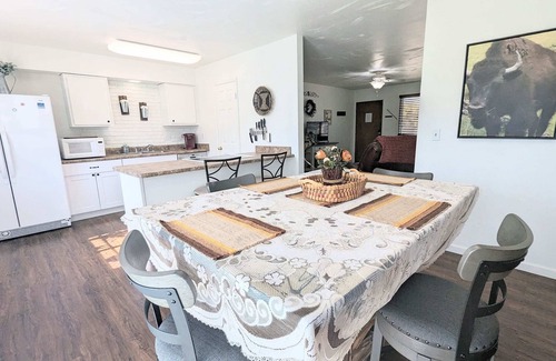 Welcome to our Cowboy Ranch in the heart of Prescott Valley—just minutes from dining, shopping, and the Findlay Toyota Center. This 3BR/2BA home sleeps 6 and features a full kitchen, dining & living rooms, private office, and bonus family room. Enjoy a fenced backyard perfect for pets, plus a quiet, safe neighborhood ideal for evening strolls. A true Western hideout for families, friends, and fellow cowpokes!