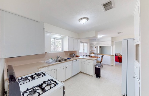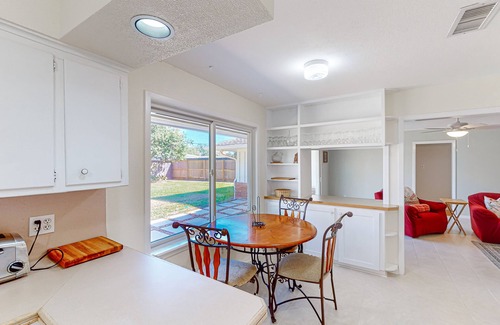 This darling home has a vast and secluded enclosed backyard with a gorgeous pavilion featuring an outdoor dining area and a gas grill. This is the perfect spot for cookouts! Upon entering this air-conditioned home, you will encounter an inviting seating area adorned with several magazines and books - this a great place to retreat and read your favorite novel or any of the reading material provided. Another great spot to unwind is the living area off the kitchen, which features inviting sofas and a smart TV with streaming and cable options. Prepare delicious meals and treats for the group in the pristine, well-appointed kitchen. A small coffee station with a Keurig coffee maker and a drip coffee maker provides coffee enthusiasts with a great perk. Off the kitchen is a designated laundry room with a washer/dryer.