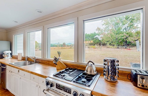 A tranquil escape awaits at The Farmhouse at Overlook Farm! Don't forget to pack your hiking shoes and sunscreen! This restful retreat is conveniently situated close to tons of opportunities for fun under the radiant South Carolina sun, like exploring Paris Mountain State Park and the Chestnut Ridge Heritage Preserve. You can also discover Landrum's delightful antique stores and other quaint shops lining its streets.