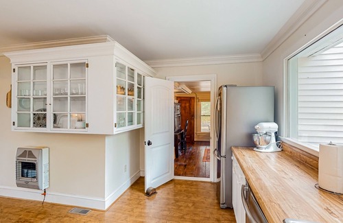 Back at your stay, prepare a delicious meal amongst the full kitchen's wooden-block countertops, stainless steel appliances, and ample natural lighting. When it's time to eat, your entire family can gather around the rustic dining table. Al fresco dining is also available on the back deck. Full and content, get comfortable on the plush living room seating where you can tune into your favorite shows or play a board game.