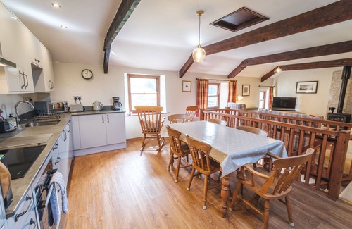 This Dales cottage dates back to the 1800’s, is grade II listed, and is approached via a short farm track about 100 metres from the main road. The upstairs living area is open plan split between a spacious kitchen dining area with traditional farmhouse style kitchen and a living room which offers comfortable seating for 4 people in front of the modern wood burning stove. The open plan layout allows for a social evening retelling the events of the day exploring the Yorkshire Dales.