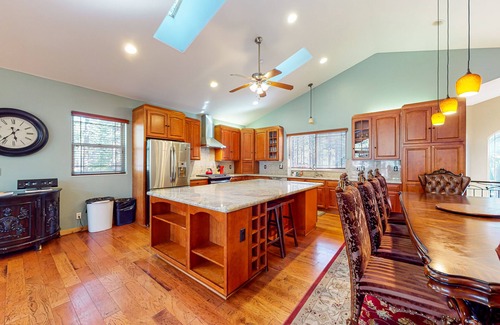 Welcome to this quiet residential retreat! With a prime location that puts you right in the middle of Mother Nature's beauty, this dog-friendly South Lake Tahoe home makes it easy to explore, unwind, and recharge in style. Located just a short distance from Heavenly ski resort and only a few miles to the family-friendly destination spot of Lakeview Commons you'll be close enough to the action but still nestled in a quiet neighborhood. After a day of adventure make your way back home, get the fireplace going and enjoy a friendly game of pool. When its time for the cook to head to the kitchen, they can still be apart of all the fun & entertainment thanks to the counter space that opens to the main living area. There really is no shortage of things to love about this beautiful home.