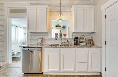 Experience the perfect mix of charm and convenience at this vacation rental in New Albany, IN. Soak up the sun in the hammock or play a game of cornhole with the kids while your pup roams the backyard. This 3-bed, 1.5-bath home features a stocked kitchen and an inviting living room where you can watch your favorite shows. Going out? Laugh down the River Run Family Water Park waterslides or visit the iconic Churchill Downs!