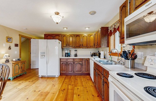 After a day out and about at Story Land (32 miles), come home to unwind on the covered front porch and watch your kids play in the enormous yard. Take in the view of the surrounding mountains and forest, and cozy up by the firepit to roast marshmallows once the sun goes down.