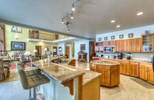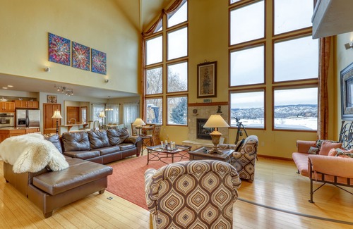 With a private, eight-person hot tub and spectacular mountain views from its massive deck, this three-story, family-friendly Gypsum vacation rental is proof that not all the jewels in Colorado's mountains come from mines! Step into the living area with its gleaming hardwood floors and wall of windows offering spectacular vistas where you can watch TV and warm up by the gas fireplace. Pack in your own supplies and create homemade meals in the gorgeous, well-equipped kitchen, or head outside and fire up the gas grill for warm weather cookouts.