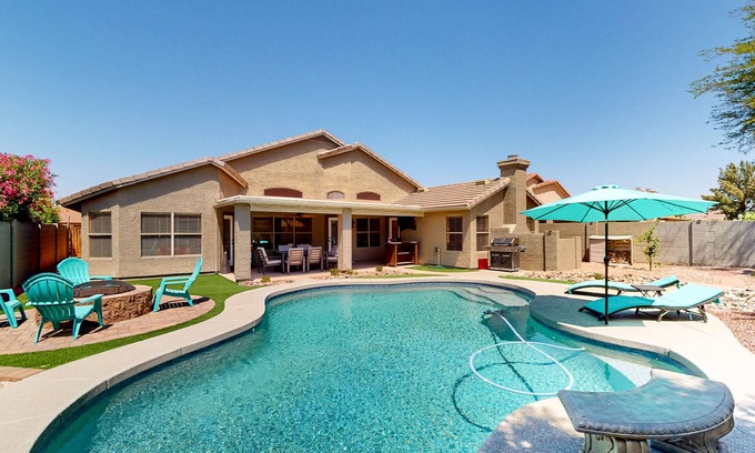 Dog-friendly home with pool, grill, office, enclosed backyard, & fireplace | House in Gilbert