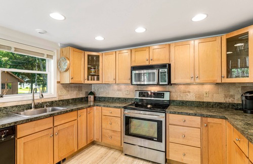 Inside, entertainment will be easy to come by with the flatscreen TV in the living room, ample seating in the sunroom for reminiscing with loved ones, and a full kitchen to tackle favorite recipes on modern appliances. Plus, the high-speed WiFi is more than ready to assist with remote work, streaming movies, or sharing memories on social media to make friends back home jealous.