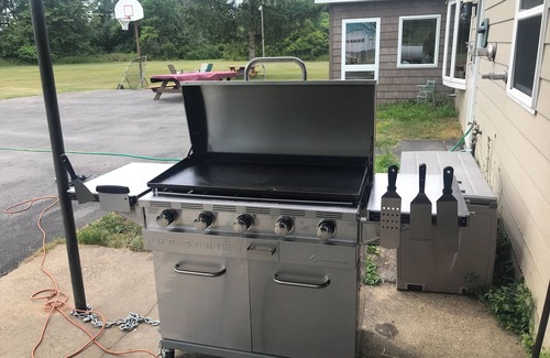 The property offers plenty of indoor and outdoor space for your group. Outdoors you will find picnic tables that can accommodate up to 16 people for large meals, an outdoor kitchen area featuring a BBQ grill and separate griddle cooktop for all those large feasts. New for 2024 is a 6 person hot tub just outside the first floor bedrooms. Host your firepit to sit around and tell all those ghost stories and bad dad jokes while staring at the satellite and star-filled sky! Lots of activities without leaving the property, you'll find a driveway basketball court along with a groomed trail through the backyard woodlands to explore. And don't forget the pool, a large size with a deep end for swimming, playing and just cooling off.