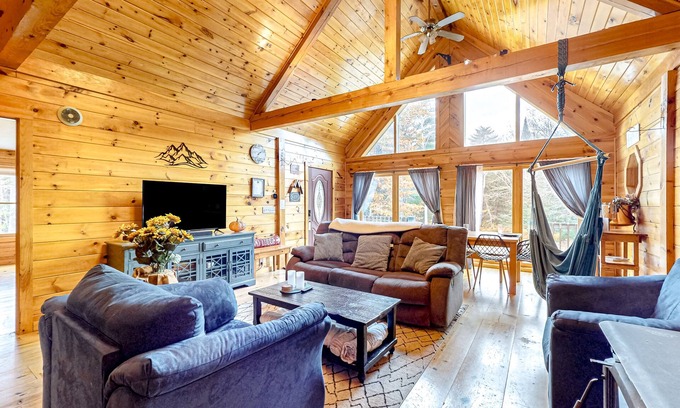 - Dog-friendly log cabin on 44 acres with woodstove & porch, near lakes/skiing