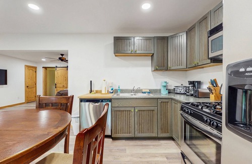 Inside, the home features a spacious living room with a cozy sofa bed, high-speed internet, and a TV equipped with Netflix and HBO streaming for your entertainment. The well-appointed kitchen comes complete with modern appliances, making meal prep a breeze. Gather around the dining area or enjoy your meals on the deck, soaking in the fresh mountain air.
