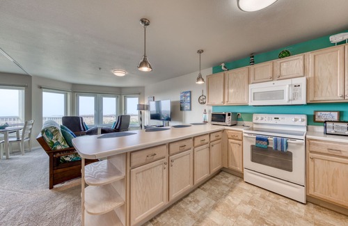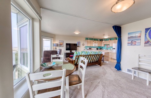 Start your Long Beach vacation off on the right foot at this third-floor and oceanfront condo just steps from the beach and downtown. This bright, beachy getaway has a full kitchen plus a booster seat for younger guests. The electric fireplace provides all the feelings of home. This vacation rental also includes a Roku-equipped TV for streaming your favorite shows and movies using your own account information. Enjoy the private, furnished balcony with expansive views, where you can take in stunning sunsets over the ocean every evening.