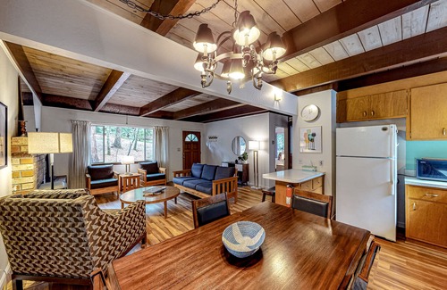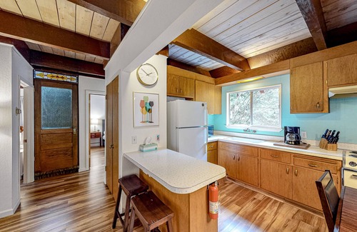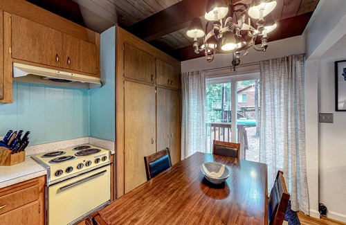 Located close to hiking trails, lakes, and parks, this charming A-frame home is a terrific option for those looking to get away from it all for a little while. Inside this two-story vacation rental, you'll find an open great room featuring a well-equipped, full kitchen for brewing up your morning coffee or preparing your favorite recipes. Dine together or play some board games at the adjacent table for four, and then settle into the living area to stream your favorite TV channels.