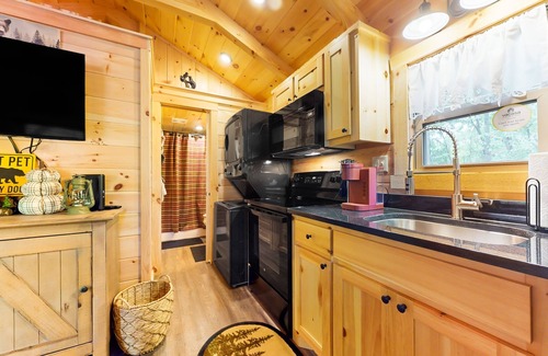 Take some time to relax and reconnect with nature at this beautifully furnished, brand-new cabin! This gorgeous retreat is perfect for couples and solo travelers looking for endless peace of mind. You are located on a riverfront mini horse rescue farm near a short trail to the river where you can fish, swim, and enjoy the scenery to your heart's content. This splendid retreat is surrounded by lush nature, offering a peaceful home away from home. Gather around the firepit for some storytelling while roasting s'mores or surprise your guest with a delicious grilled treat using the provided grill.