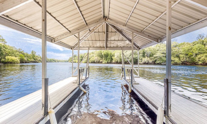 The house has its own two private docks and boat slip. The on-site boat ramp is shared with the other home: River Watcher.