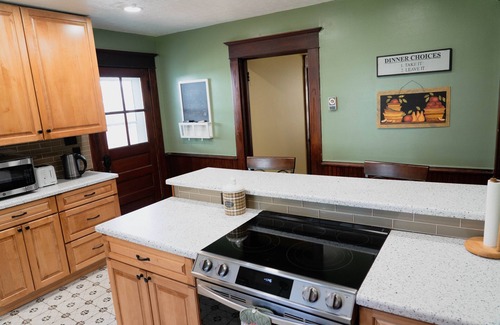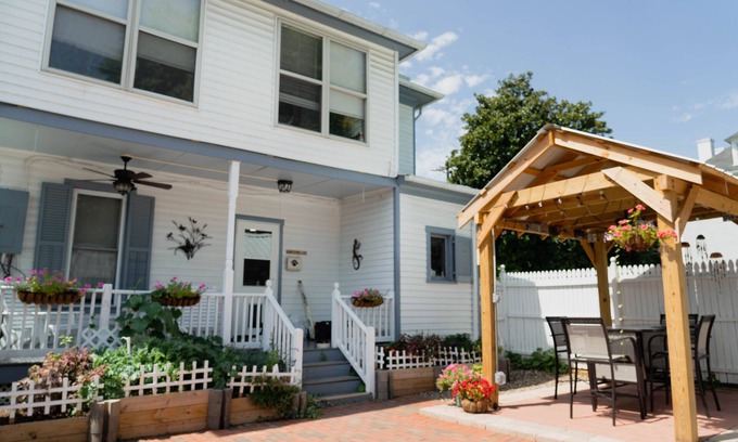 Gracie’s Place is located in the heart of downtown Woodstock, Virginia, a charming historic town halfway between Winchester and Harrisonburg surrounded by mountains and the Shenandoah River. Gracie’s Place has 4 bedrooms, 2 and 1/2 baths, and comfortably sleeps 8 -9 people. You can walk to nearby restaurants or prepare your own meals in the well-equipped gourmet kitchen and dining room. There are plenty of spaces to enjoy including a living room, parlor, three porches, plus a brick patio enclosed by a six-foot privacy fence. Gracie's Place is unique, fun, and curated for people traveling with their dogs.