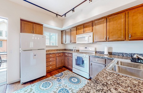 When you enter this multi-level townhouse, you will discover a welcoming open floor plan on the second floor. Prepare tasty, home-cooked meals in your well-equipped kitchen, including a breakfast bar with counter seating. Enjoy beverages and conversation in the adjacent sitting room, or head to the living room for a family movie night while enjoying the ambiance of the gas fireplace. Outside, spend summer evenings relaxing on the covered front porch or your morning coffee on the balcony. The upper level hosts two bedrooms, each equipped with smart TVs and en suite baths. With a shared outdoor pool, splash pad, hot tub, outdoor fireplace, and grill, there is a little bit of something for everyone!
