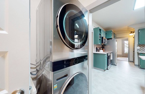 Built in 1910, this home blends its century-old history with contemporary pops of color and pattern. After a day of exploring the city, come home to unwind in a front parlor with large windows, modern yet comfortable seating, and a TV to screen your favorite movies.