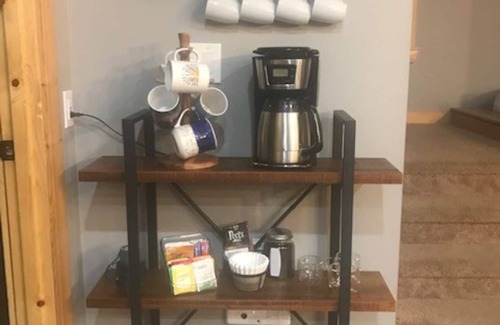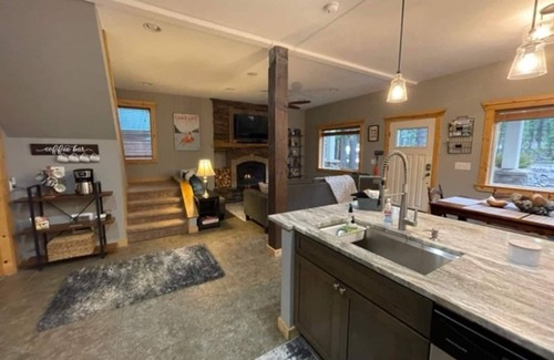 This is a 1,680 sq ft 2 story cabin with 4 queen beds (3 private bedrooms and 1 bed in an alcove off the upstairs living room). The mattresses are all new - there is a softer pillow top mattress from Macy's downstairs, two 12" Zinius memory foam mattresses purchased in 2021 upstairs and a 12" Iyee memory foam hybrid mattress with cooling gel purchased in 2021 in the small bedroom upstairs. There are 2 bathrooms, 2 living rooms, a game area, and a newly remodeled kitchen with bar and adjacent dining area. Enjoy cooking on the gas range in our fully equipped kitchen that comes with both a stove-top and electric griddle, Instapot, various pots, baking pans, salad spinner, measuring cups, serving platters, wine and champagne glasses, glass growlers, and matching white dishes. We also stock a number of spices, salt/pepper, olive oil, baking powder, baking soda, coffee filters, coffee for a few days, hot cocoa, apple cider and tea. The laundry room has a washer/dryer and plenty of hooks for wet clothes and towels. We provide detergent and dryer sheets. For kids we provide plastic dishes and utensils, a mobile high chair, pack n play, bathroom step stools, and a variety of toys from baby age to young adult games. A card table, board games, puzzles, cards, coloring books, crayons, and kids toys are in the game area cabinets upstairs. For doggos we provide large raised water and food bowls. The downstairs bathroom is newly remodeled and has a step up into the deep soaking tub/shower combo. Both showers are stocked with shampoo/conditioner and body wash. We provide hair dryers in both bathrooms and a first aid kit. Cuddle up with a book and one of our fuzzy blankets in front of the gas fireplace or enjoy Netflix or Hulu on two smart TVs. Free high speed wireless internet access.