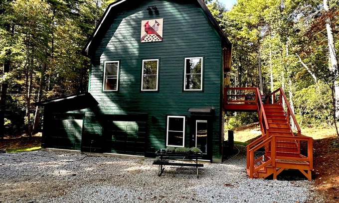 Welcome to the Dog Friendly Upscale Cottage with Treehouse Vibe Close to Town and Outdoor Fun, your dream venue for a romantic getaway or intimate wedding celebration. Nestled amidst the serene beauty of Hendersonville, North Carolina, this charming two-bedroom cottage offers an enchanting atmosphere with its contemporary elegance and woodsy appeal, making it an ideal backdrop for your special day. With easy access to picturesque outdoor settings and vibrant local attractions, you and your guests will enjoy both tranquility and adventure in one magical location.
