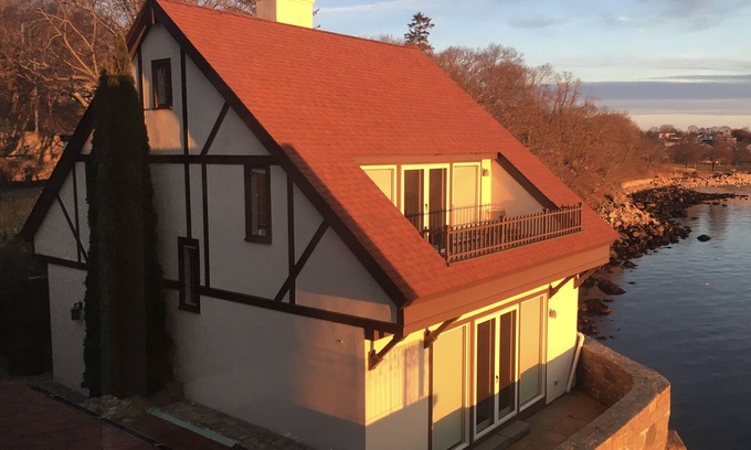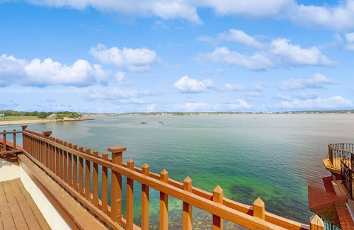 Perched right on Gloucester Harbor, this large, two-level studio sleeps like a one bedroom, with the entire upper floor occupied by the main suite. Downstairs, you’ll find an inviting, spacious living quarters dominated by the floor-to-ceiling windows and French doors that lead onto a waterfront deck lined with stone walls and a bar-top table – making for the perfect place to overlook the breathtaking scenery with a cup of coffee or glass of wine. In the kitchen, you’ll find a full suite of stainless steel appliances, ample counter space, and all the gadgets you need to make everything from a masterpiece to a muffin. At mealtime, the adjacent dining room comfortably seats the whole family. When it’s time to head out to explore, you’re surrounded by water and beaches, as well as opportunities for hiking, biking, birdwatching, and sailing. When you return, get comfortable upstairs in your suite where you will be greeted with another, more spacious, deck that serves as a phenomenal place to sun bathe. Unwind in bed with a little TV on the flatscreen. No matter how you spent the day, it'll come to a relaxing end if you're staying at this snug waterfront getaway.