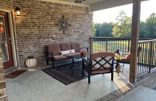 Our luxurious home away from home as we joined VRBO Aug 24, 2024. Living room, master & guest bedroom each with TV. Spacious open floor plan with electric fireplace. Covered back porch with great privacy, large yard, more than 1/2 miles of trails & attached carport.