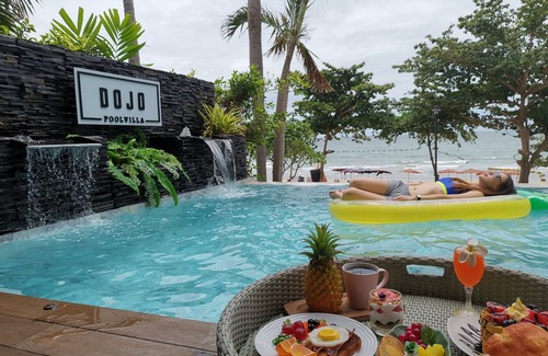 Dojo pool villa Beachfront is located in one of the nicest beach in Pattaya just 10 mins from the famous Walking street and many touristic places by car. Salt water infinity pool with a beautiful scenic seaview, out door BBQ grill, Karaoke party with a stereo system, pool table, board-games, hammock bed make it perfect for family, friends, and work retreat.