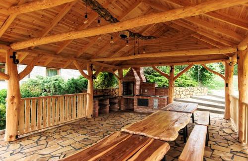 Providing barbecue facilities, Dolina 3 Stawów Tarnawka provides accommodations in Handzlówka. This property offers access to a balcony, free private parking, and free Wifi. On clear days, guests can head outside to enjoy the villa's outdoor fireplace or simply kick back and relax. Offering a terrace and lake views, the spacious villa includes 4 bedrooms, a living room, satellite flat-screen TV, an equipped kitchen, and 3 bathrooms with a hot tub and a bath. The parquet floors, fireplace, and peaceful vibe add to the ambience of the room. The accommodation is non-smoking. For visitors looking to embark on day trips to nearby landmarks, the villa offers a selection of packed lunches. After a day of skiing, cycling, or hiking, guests can relax in the garden or the shared lounge area. Lancut Castle is 11 miles from Dolina 3 Stawów Tarnawka, while Nowy Świat Shopping Center is 17 miles away. Rzeszów-Jasionka Airport is 22 miles from the property.