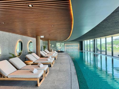 Located in Porto de Mós, 9.9 mi from Our Lady of Fatima Basilica, Dolinas Climbing Hotel features accommodations with a restaurant, private parking and a bar. The property is located 12 mi from Monastery of Alcobaca, 5.3 mi from Batalha Monastery and 9.9 mi from Chapel of the Apparitions. The accommodations provides a 24-hour front desk, airport transfers, room service and free WiFi throughout the property. Dolinas is the first hotel in Portugal to offer indoor climbing facilities. The Dolinas Climbing Center has an area of 700m2 with climbing routes for children, boulder, autobelays, training equipment with kilter board and a wall of over 98 feet. The hotel has a heated, saline-filled indoor relaxation pool with panoramic views of the town and Porto de Mós castle. The hotel will provide guests with air-conditioned rooms with a desk, a kettle, a mini-bar, a safety deposit box, a flat-screen TV and a private bathroom with a shower. At Dolinas Climbing Hotel rooms have bed linen and towels. A buffet breakfast is available each morning at the accommodations. Dolinas Climbing Hotel offers 4-star accommodations with a hammam. Alcobaça Castle is 12 mi from the hotel, while Dr. Magalhães Pessoa Stadium is 14 mi from the property. Humberto Delgado Airport is 80 mi away.