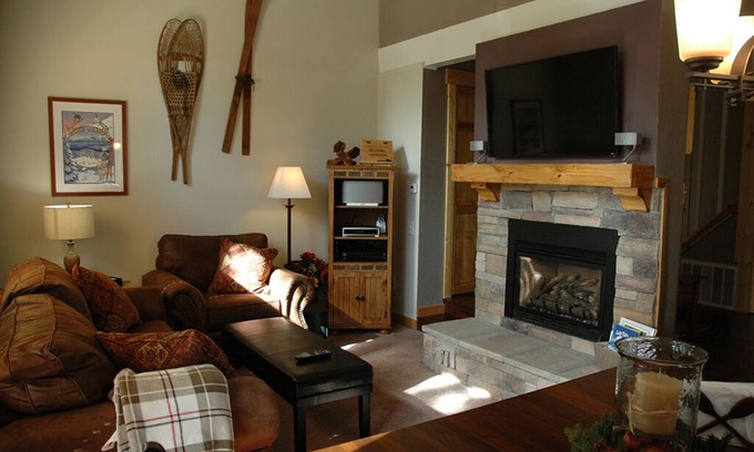 Completely upgraded, DH61 features central gas fireplace, 48 inch flat screen TV with HD Dish Network, Sonos internet radio, DVD library, board games, and microfiber couch, plus cozy chairs, upgraded deck with gas grill (available in summer), and gourmet kitchen with all new appliances. Dining table seats 6-8 with new table, bench seat and leaf extension.