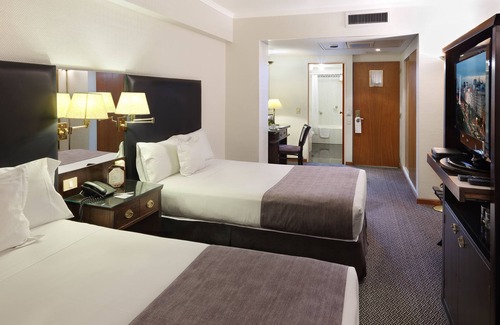 Summary: Our room was from the previous century and had thorn carpets, leaking taps, a musty smell, non-controllable air conditioning, and very slow escalators. However, the breakfast was okay, and the cleaning was good. The location is in the middle of the city and very accessible but very crowded. It seems like they have a few better rooms for advertisement purposes. This is not a four-star hotel as advertised.