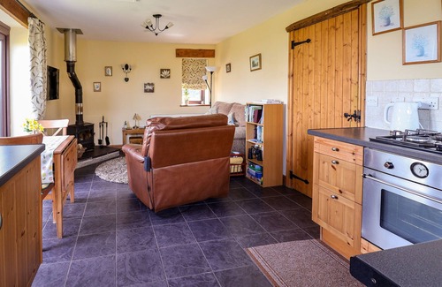 Dolphin Bach, a single-storey abode consists of an open-plan living space including a kitchen with an electric oven, gas hob, microwave, fridge, a dining area with seating for two people, and a sitting area with a woodburning stove and TV. WiFi via Hotspot. The bedroom consists of a double, accompanied by a wet room. Outside, there is an enclosed garden with lawn, patio, furniture, BBQ, and off-road parking for two cars. Within 0.6 miles, you will find a shop, and within 0.1 miles, a pub. Well behaved pets welcome. Sorry, no smoking allowed on the premises. Fuel, power, starter pack for woodburning stove, bed linen and towels are all included in the price. Dolphin Bach makes an excellent base for a rural escape to Wales. Note: Check-in from 2pm, check-out by 11am. Note: Guests may launder their items in the owners adjacent washing machine for a small fee if required and with the owner's arrangement. Note: Cindy (Joint Owner) is a fully qualified massage therapist and a wide range of therapeutic or relaxing therapy treatments can be provided onsite, subject to availability. Please note: The property has a minimum of a 3 night stay.