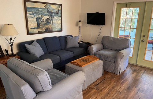 Take it easy at this unique and tranquil getaway located in Sebastian Florida. The dolphin house is a cozy cottage style home that is located minutes from the Indian River Lagoon and 10 minutes from our areas most beautiful beaches. The house features a wonderful screened in back porch with a beautifully tropical shaded back yard.