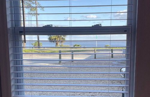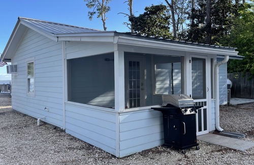 This recently renovated one bedroom one bath cottage is only a 10-minute drive to the beaches of St. George Island or a 10-minute drive to the historical Apalachicola. Dolphin House #2 is great for an overnight or weekend stay. Up to 4 guests can be accommodated, with a king bed and queen sleeper sofa. A smart TV is in the living room & wireless internet is available. In the Kitchenette you will find a Keurig coffee maker, microwave, mini fridge and small sink. (This house does NOT have a stove.) A propane grill is just outside the screened in porch. You can grill and enjoy a beautiful water view. This property is located between Dolphin House #1 and Dolphin House #3, all three homes share a driveway.