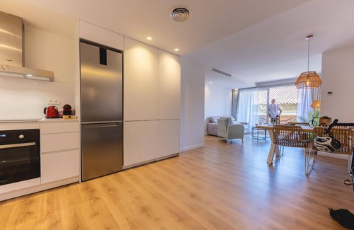 Stay in the heart of Girona in this spacious and modern apartment on Gran Via Jaume I, just around the corner from Carrer Nou and the Saba Santa Caterina parking. Only minutes from the historic Old Town, it’s the perfect base to explore the city. Fully renovated in 2022, the apartment combines comfort and style with two bedrooms, two full bathrooms, and a large balcony that brings in plenty of natural light. The bright living room has a sofa bed, armchair, smart TV, dining table, air conditioning, and fast Wi-Fi. The open kitchen is fully equipped with everything you need, including a dishwasher, oven, microwave, washing machine, dryer, and ironing facilities. The master bedroom has a double bed and an en suite bathroom with shower, while the second bedroom has two single beds and generous storage. With its space, modern comfort, and central location, this apartment is ideal for families or friends looking to enjoy Girona in style.