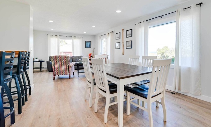 Nestled in the heart of Rogers City's charming downtown area, just across the street from the sparkling waters of Lake Huron, this 7-bedroom, 2.5-bath home invites you to enjoy the best of both worlds! Start your morning with a leisurely walk to the beach across the street before venturing out for a day full of hiking, skiing, boating, and exploring. Once the sun starts to dip, head back to cozy up by the fire pit and recount the day's adventures at this classic vacation rental.