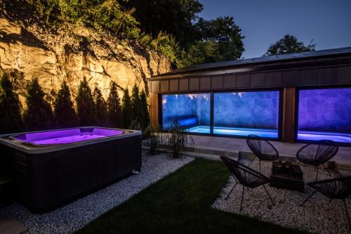 Providing a garden, Dom z basenem Bałtów 22 features accommodations in Bałtów. This property offers access to a balcony, table tennis, free private parking, and free Wifi. Guests also enjoy access to the sauna and hot spring bath, as well as the hot tub and indoor pool. Offering a terrace and mountain views, the spacious vacation home includes 3 bedrooms, a living room, satellite flat-screen TV, an equipped kitchen, and 4 bathrooms with a hot tub and a bath. Towels and bed linen are offered in the vacation home. This vacation home is allergy-free and non-smoking. During warmer months, you can make use of the barbecue facilities and eat on the private patio. The vacation home also provides a plunge pool and an open-air bath for guests to relax in. For guests with children, Dom z basenem Bałtów 22 offers an indoor play area. Skiing and cycling can be enjoyed nearby, while a ski equipment rental service, a ski pass sales point and ski storage space, are also available on-site. JuraPark Bałtów is a 3-minute walk from the accommodation, while Collegiate Church in Opatów is 21 miles away. Radom-Sadkow Airport is 32 miles from the property, and the property offers a paid airport shuttle service.