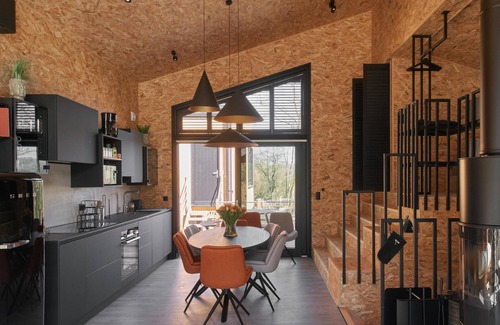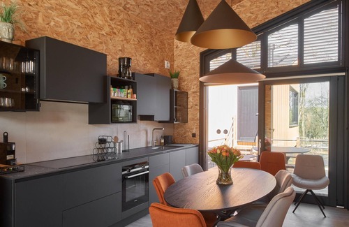This holiday estate is unique in all its aspects. From architecture to having a private garden park with numerous facilities. On the grounds are the two holiday homes with capacity for eight people each and where in each house you have all the comforts for the group, there are a total of 7 bedrooms of which 4 are en suite and 2 separate bathrooms. In the living areas there are 2 equipped open kitchens with dining areas for eight people each