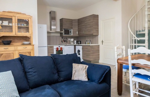 In ground garden, it has its living room and open kitchen equipped with new (ovens, washing machine, dishwasher), a bathroom with shower, separate toilet; upstairs: 2 bedrooms (2 beds 80 x 200 and 1 bed 160 x 200). Sofa bed very comfortable 160x200. Air conditioning in the rooms.