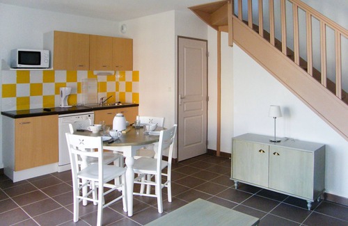 "Domaine d'Ensérune", 3-room terraced house 40 m2 on 2 levels. Object suitable for 4 adults + 2 children. Bright, simple furnishings: living/sleeping room with 1 double sofabed, dining table and TV. Exit to the terrace. Kitchenette (dishwasher, 4 ceramic glass hob hotplates, microwave, electric coffee machine). Upper floor: 1 room with 1 french bed. 1 room with 2 beds. Bath or shower/WC. Electric heating. Terrace. Terrace furniture. Facilities: Internet (WiFi). Please note: non-smokers only. Maximum 1 pet/ dog allowed. Smoke alarm, fire extinguisher. Maximum occupancy: 4 adults and 2 children up to 14 years.