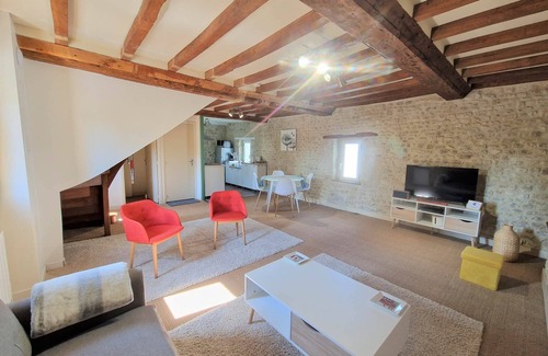 Within the Domaine de Houtteville, the ARTY gîte (4 people max.) in triplex is located in the typical Norman farmhouse. This house with two floors combines careful decoration and the charm of beams and stone. The cottage is fully equipped for holidays as a couple, with family or friends.