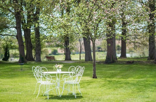 Each cottage has a private terrace with dining area, rest area, parasol and barbecue. The landscaped park with its apple trees is bordered by a magnificent avenue of century-old lime trees. The large gazebo garden with its vegetable garden offers a beautiful panoramic view of the countryside and the river. Also take advantage of the fitness room and sauna at your disposal.